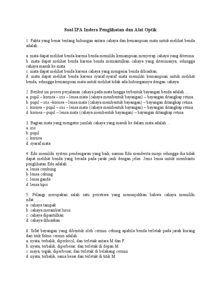 Soal Ipa Indera Penglihatan Dan Alat Optik Docx