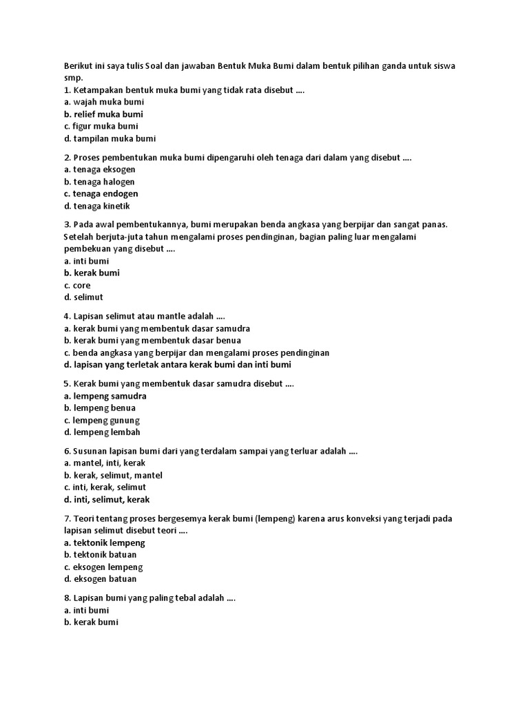 Soal Ips Kelas 7 Smp Bab Keberagaman Bentuk Muka Bumi Dan Kunci. Soal Selanjutnya Cara Menggunakan. Soal Struktur Bumi Kelas 7-1 DRAFT.