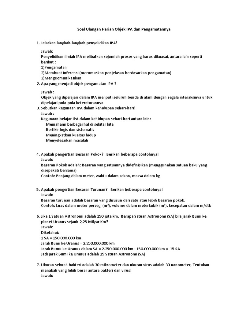 Soal ulangan haria ipa objek ipa dan pengamatannya. Soal soal dan jawaban berikut membahas materi bab 1 yaitu tentang objek ipa dan pengamatannya. Berikut ini soal objek ipa dan pengamatannya materi ipa kelas 7 smp mts kurikululum 2013 yang dapat digunakan peserta didik untuk. Contoh soal ulangan pjok kelas viii smp mts materi pencegahan pergaulan bebas contoh soal ulangan ips kelas viii smp mts.